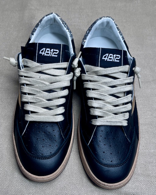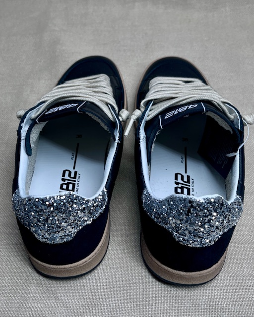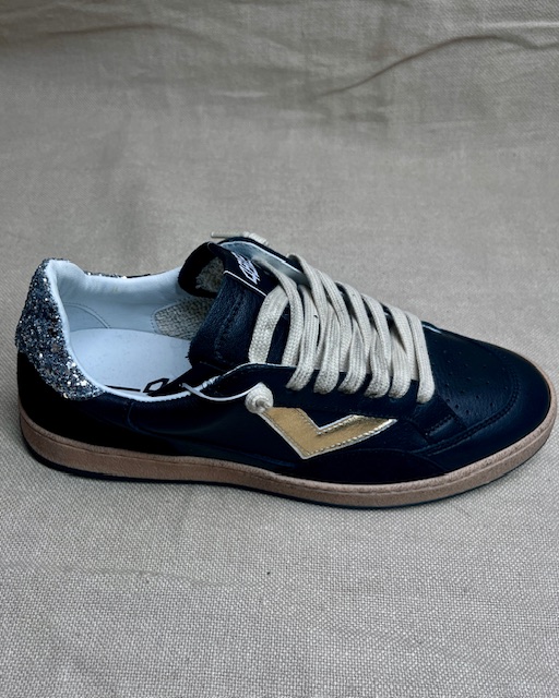 A classic sneaker reworking a vintage finish. These sneakers crafted from calf-skin leather and suede, features leather on the sides, glitter heel tab and off-white laces that adds the finishing touch. Made in Italy.