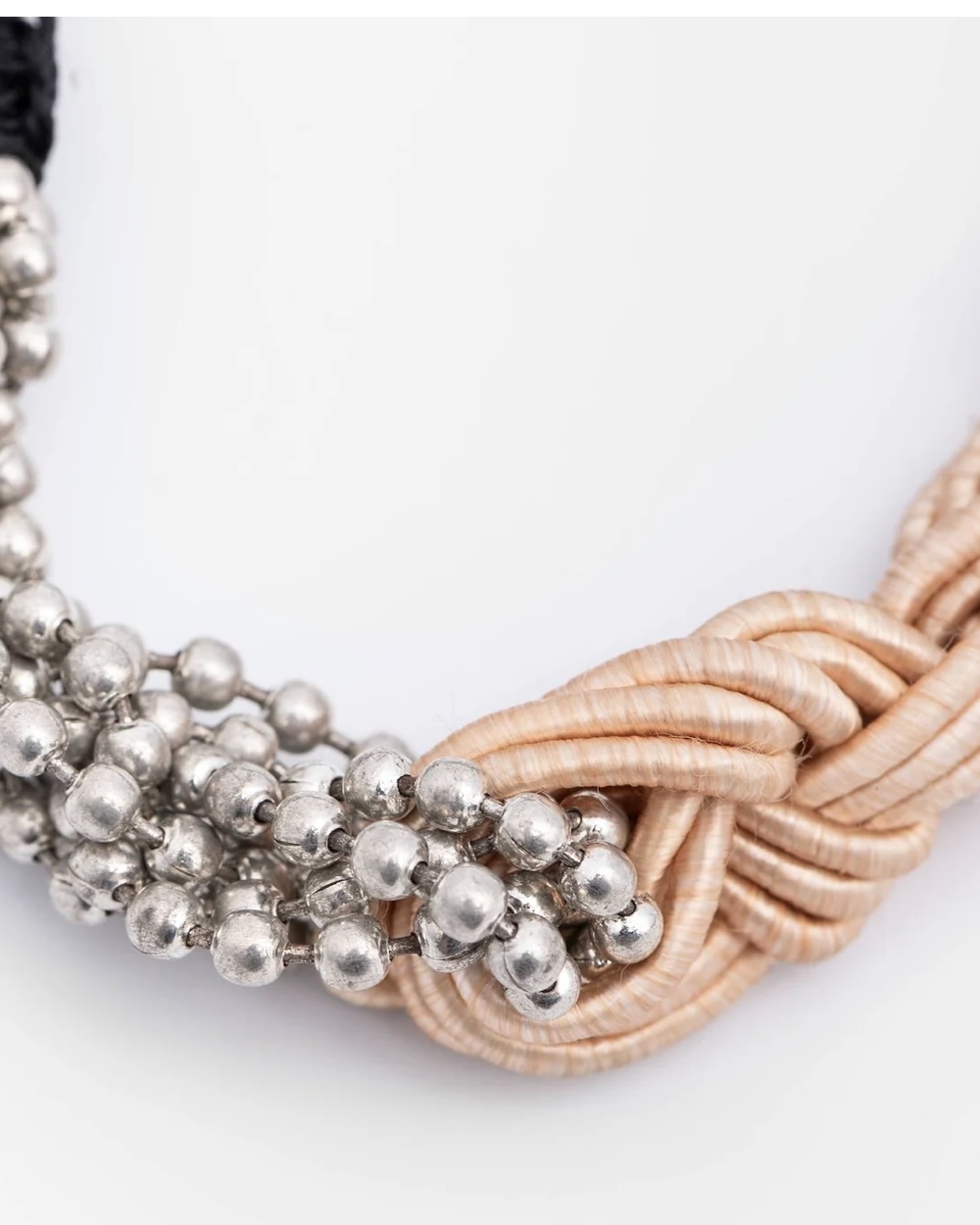 Bracelet made by hand by weaving cords covered with colored threads with braids of metal beads