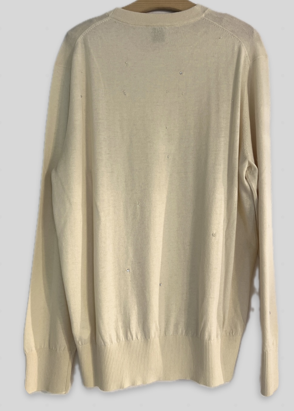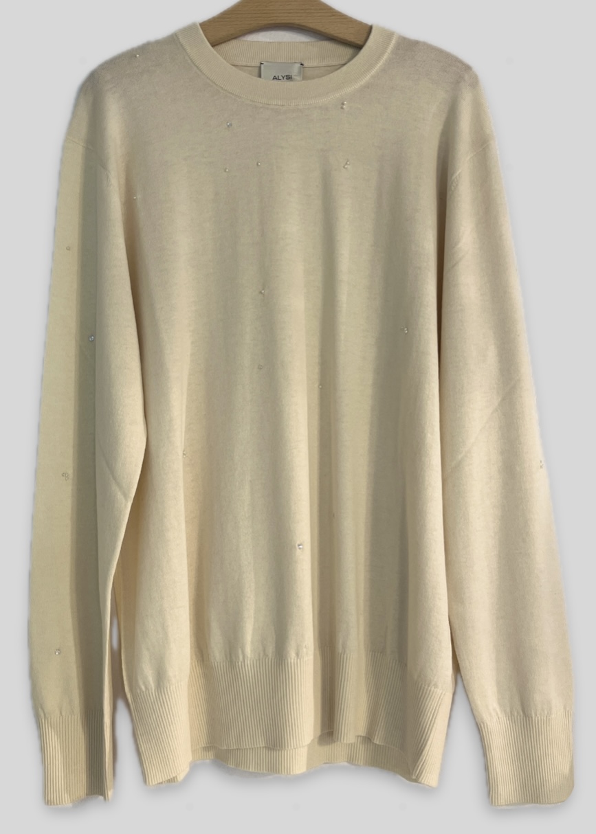 Luxury sweater crafted from wool-blend, features subtle embelished beading embroidered by hand. Made in Italy.