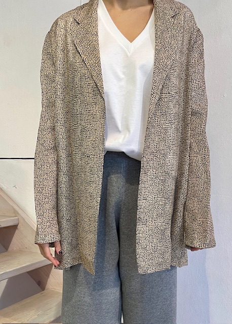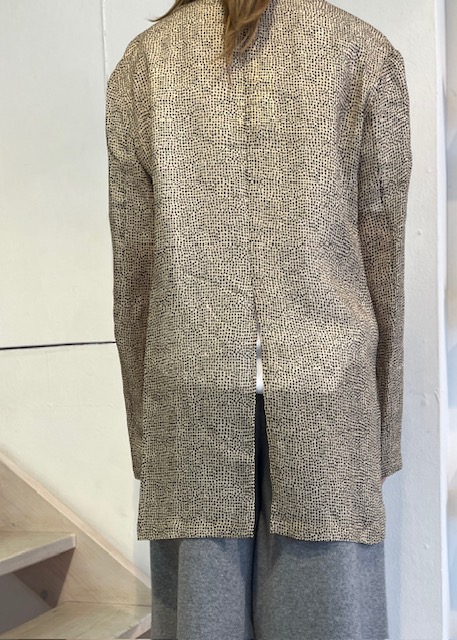 A blazer crafted from lightweight ramie, designed to drape effortlessly on the body, The open front, free of closures, enhances its relaxed elegance, while classic lapels ad subtle structure. A split at the back ensures ease of movement, balancing comfort with a refined modern silhouette. Made in Italy.
