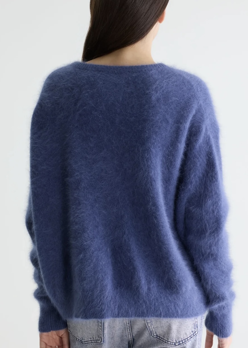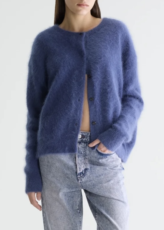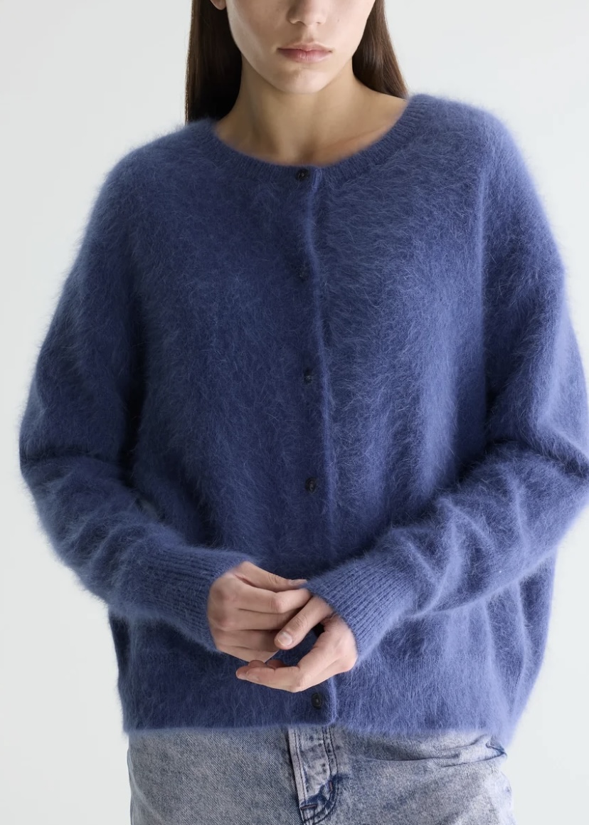 Wrap yourself in softness with this anogra mix cardigan. It offers a soft texture with a gentle, cozy drape. A classic silhouette that layers perfectly over both casual and dressier looks or worn as a top on its own. This cardigan brings comfortm, warmth and timeless style in one versatile piece.