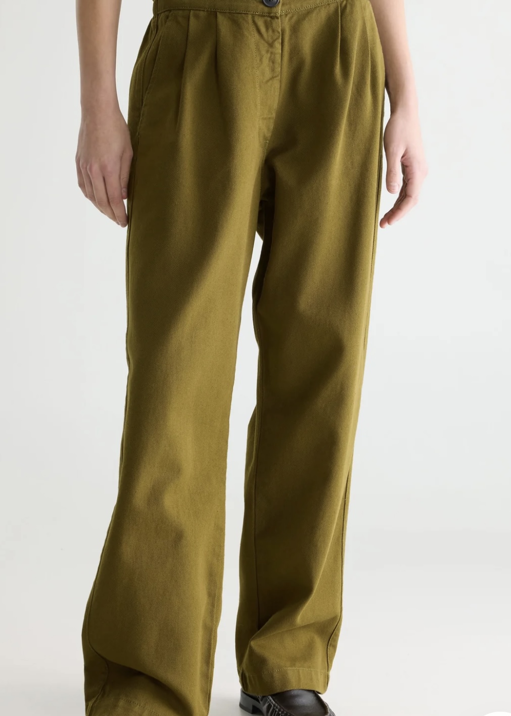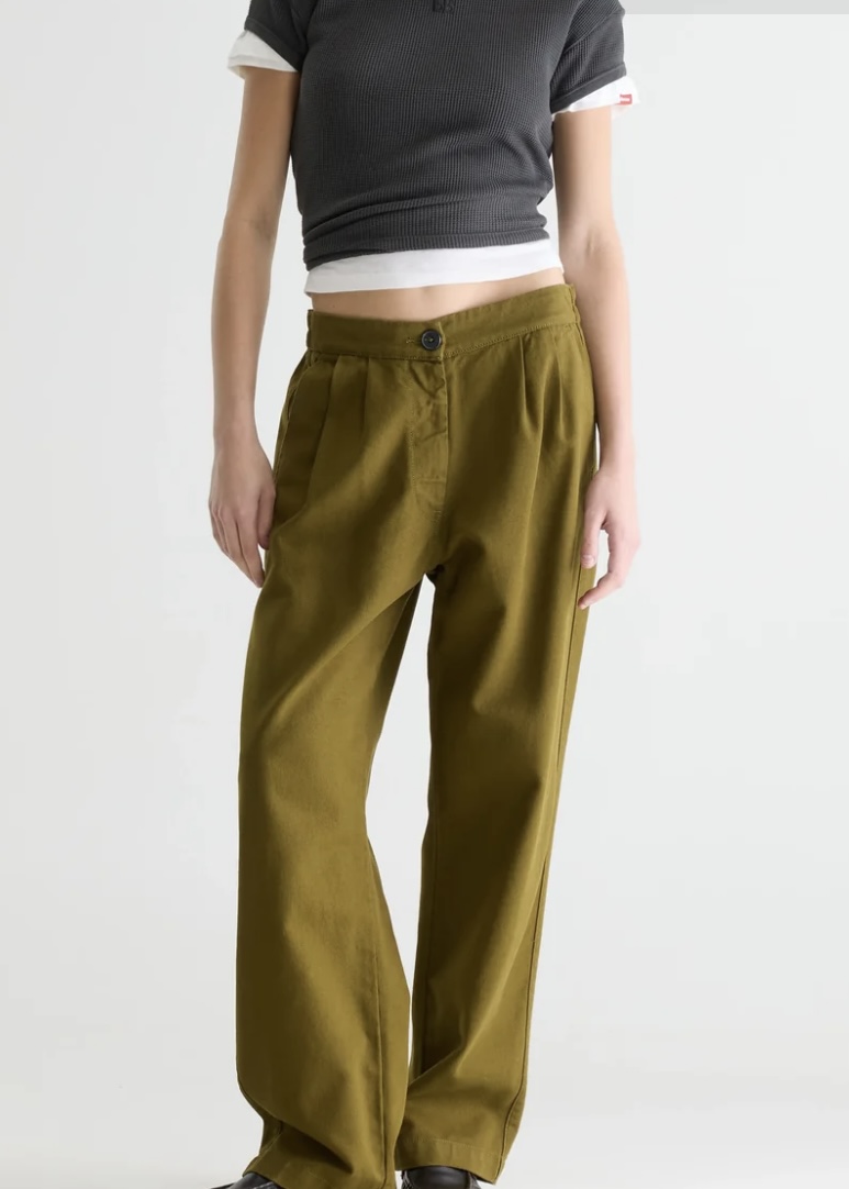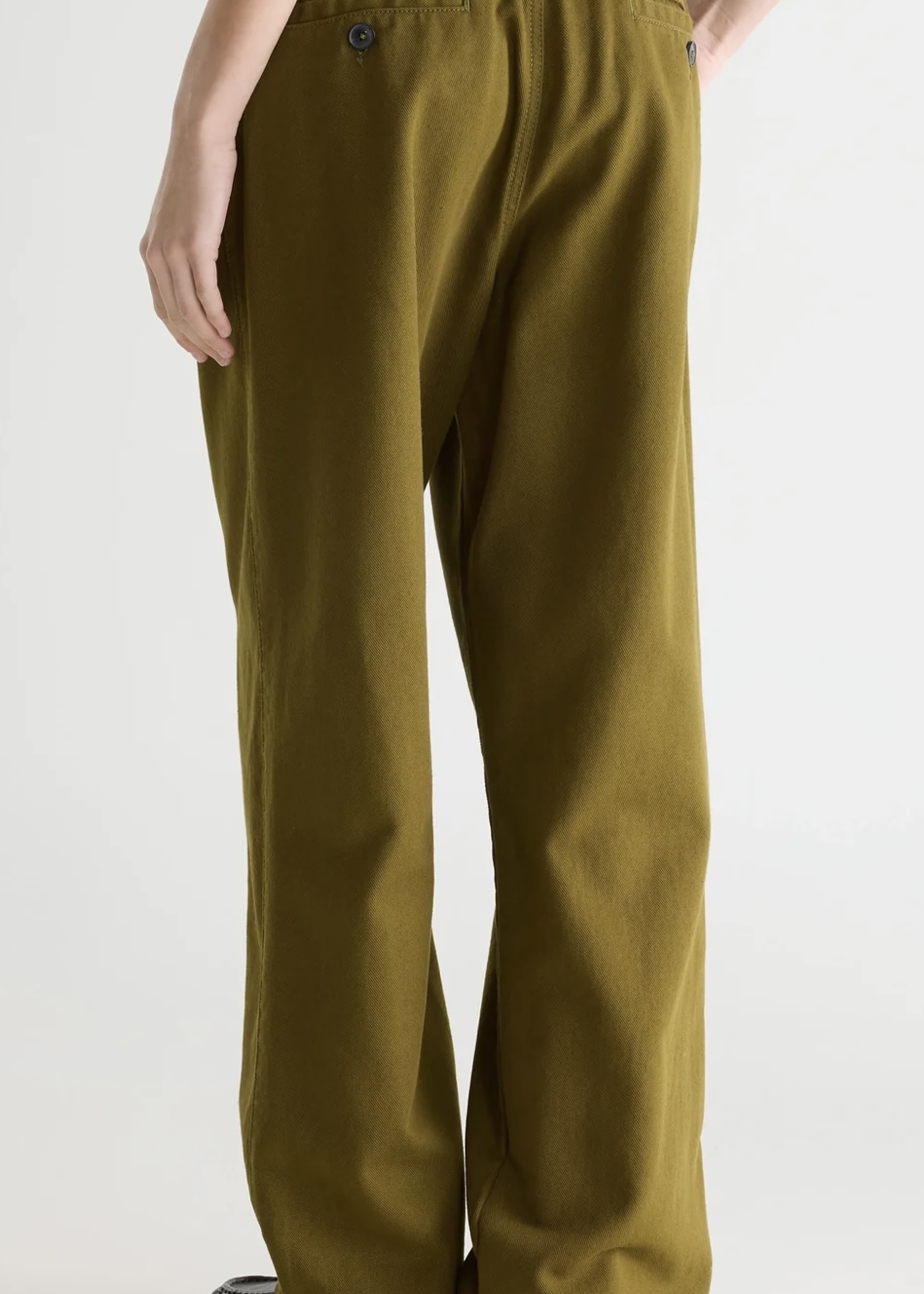 Regular trousers with straight leg and elasticated back waist in chalk twill.