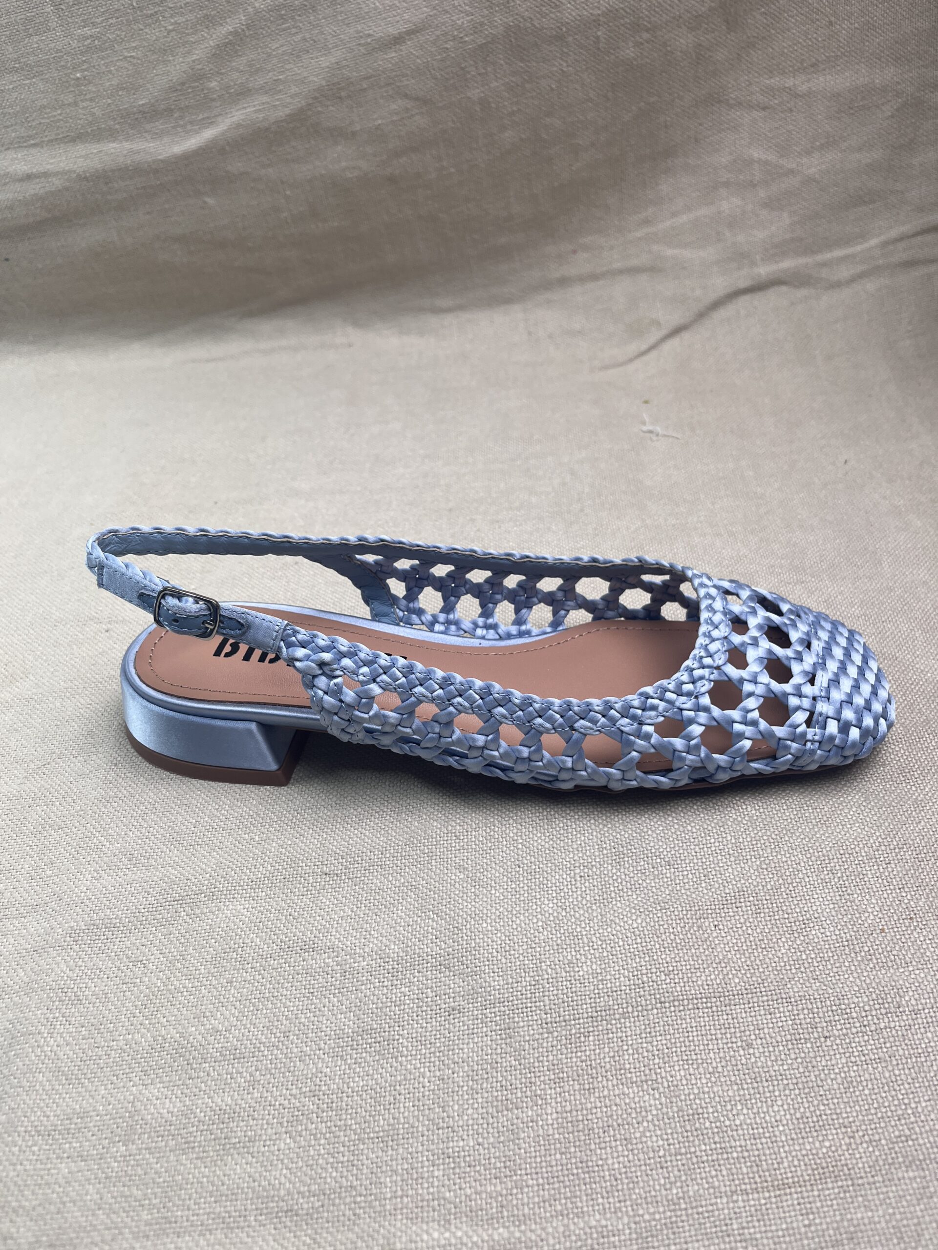 Elevate your everyday elegance with this woven slingback sandal. Crafted in a soft powder-blue hue, its intricate braided design creates an airy, artisanal silhouette that feels both refined and modern. The delicate adjustable strap offers a graceful fit, while the low block heel adds subtle lift and comfort. A perfect balance of texture and sophistication. Made in Italy.
