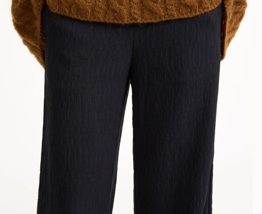 These trousers features a relaxed wide-leg silhouette with a super-tactile texture and side slip pockets. Their simple yet stylish cut and elastic waistband ensure you’ll reach for these comfortable trousers time and again.