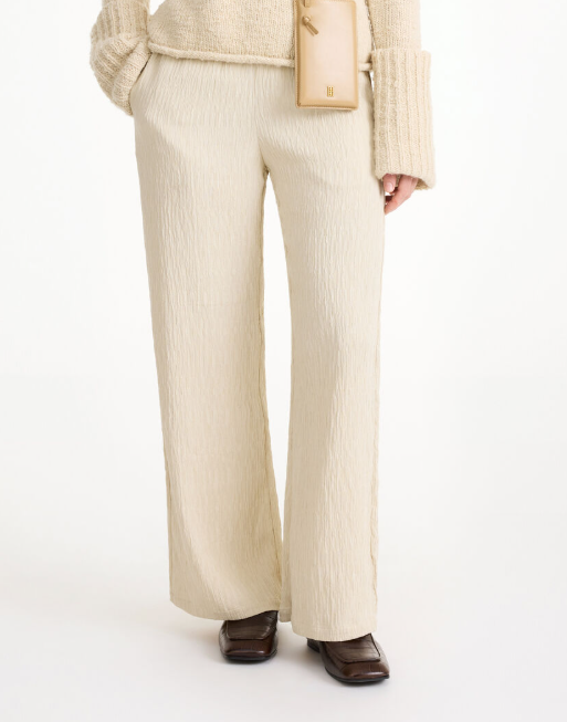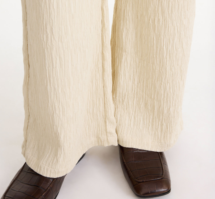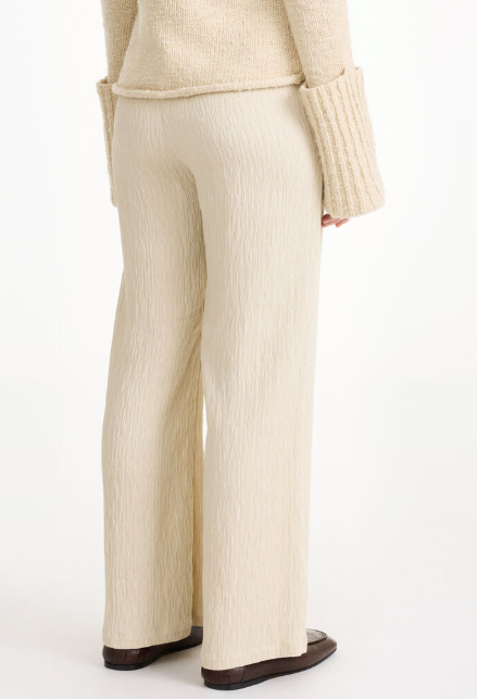 These trousers features a relaxed wide-leg silhouette with a super-tactile texture and side slip pockets.  Their simple yet stylish cut and elastic waistband ensure you’ll reach for these comfortable trousers time and again.