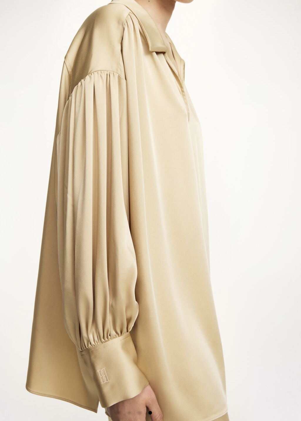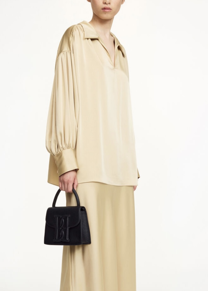 Designed in a minimalist silhouette that will transcend seasons, the Leonora blouse will slot right into your existing wardrobe – and work for numerous occasions. Crafted in satin, the tunic-style design has a sharp collar, V-neck and buttoned cuffs.