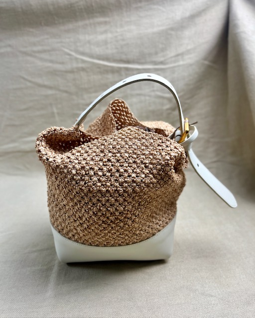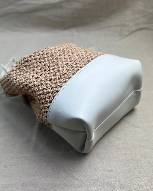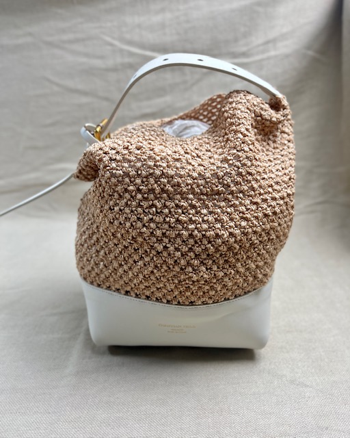 This crochet raffia straw bag is lightweight. The handle and base are made of  leather, giving it a casual yet sophisticated look.  Adjustable handle for length that suits you best and furthermore it comes with a removable pouch (zipper closure).  Made in Italy.