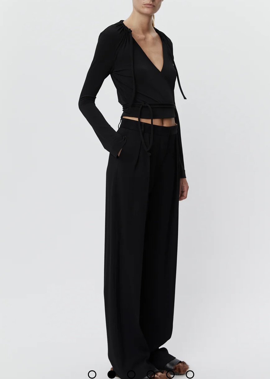 Explore our curated collection featuring mid-rise, wide-leg trousers  adorned with waist pleats, a chic zip fly with a hook closure and side pockets.  Complete with a single patch pocket at the back.  These trousers offer a perfect blend of modern flair and classic design, ensuring a flawless fit for every occasion.  Elevate your wardrobe with these trousers, where fashion meets finesse.  Style with the Yoko blazer (co-ordinating item)