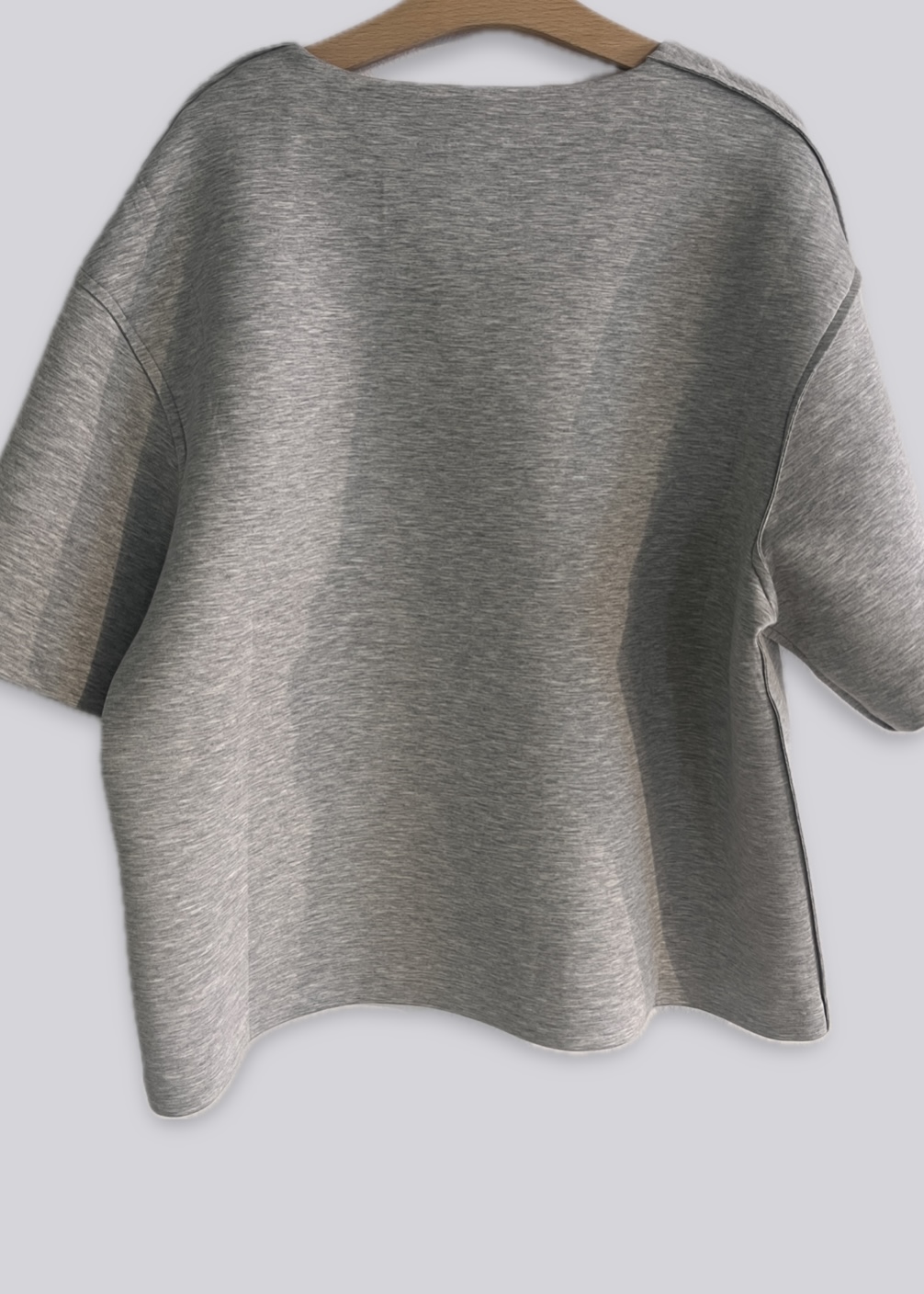 This scuba-texturedT-shirt features raised seams and a rounded neckline. The T-shirt has a loose fit. Co-ordinate with Susie skirt