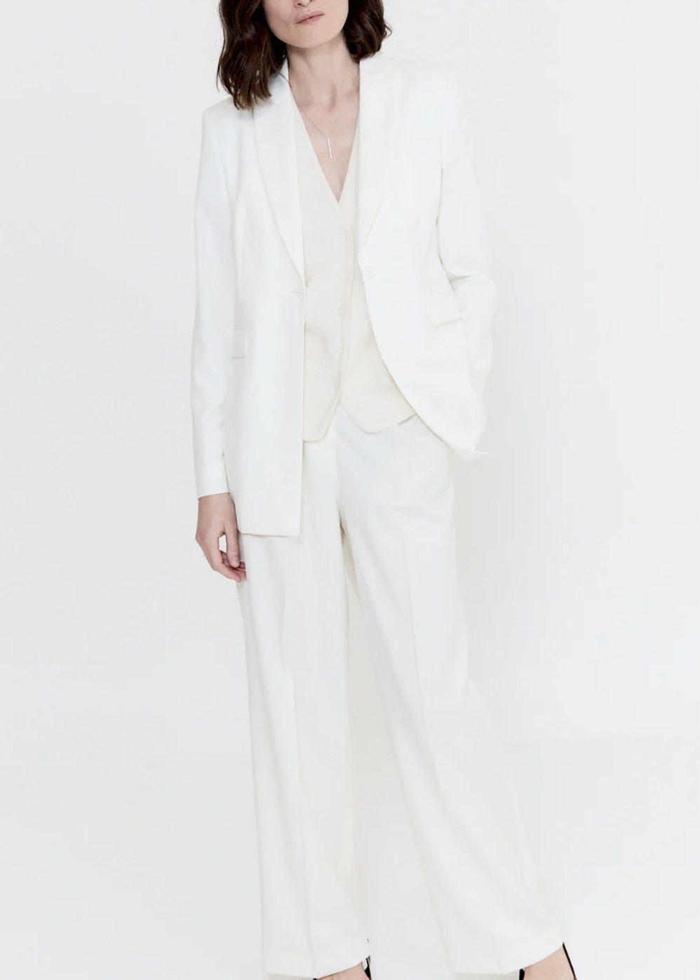 Elevate your wardrobe with this long lined blazer, expertly tailored from wool for a structured yet comfortable fit. Designed with a sleek single-breasted front, it features a sharp notch lapel, a clean breast pocket and two classic flap pockets for timeless sophistication. The back flap detail and the buttons on the cuffs add subtle, modern touches that enhance its streamlined silhouette. The blazer delivers a crisp, confident finish to any outfit. Fully lined.