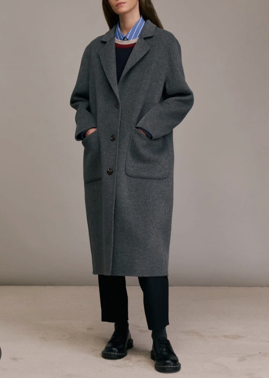 Coat with lapel collar and long sleeves. Patch pockets. Button closure on the front. 80% wool , 20% nylon