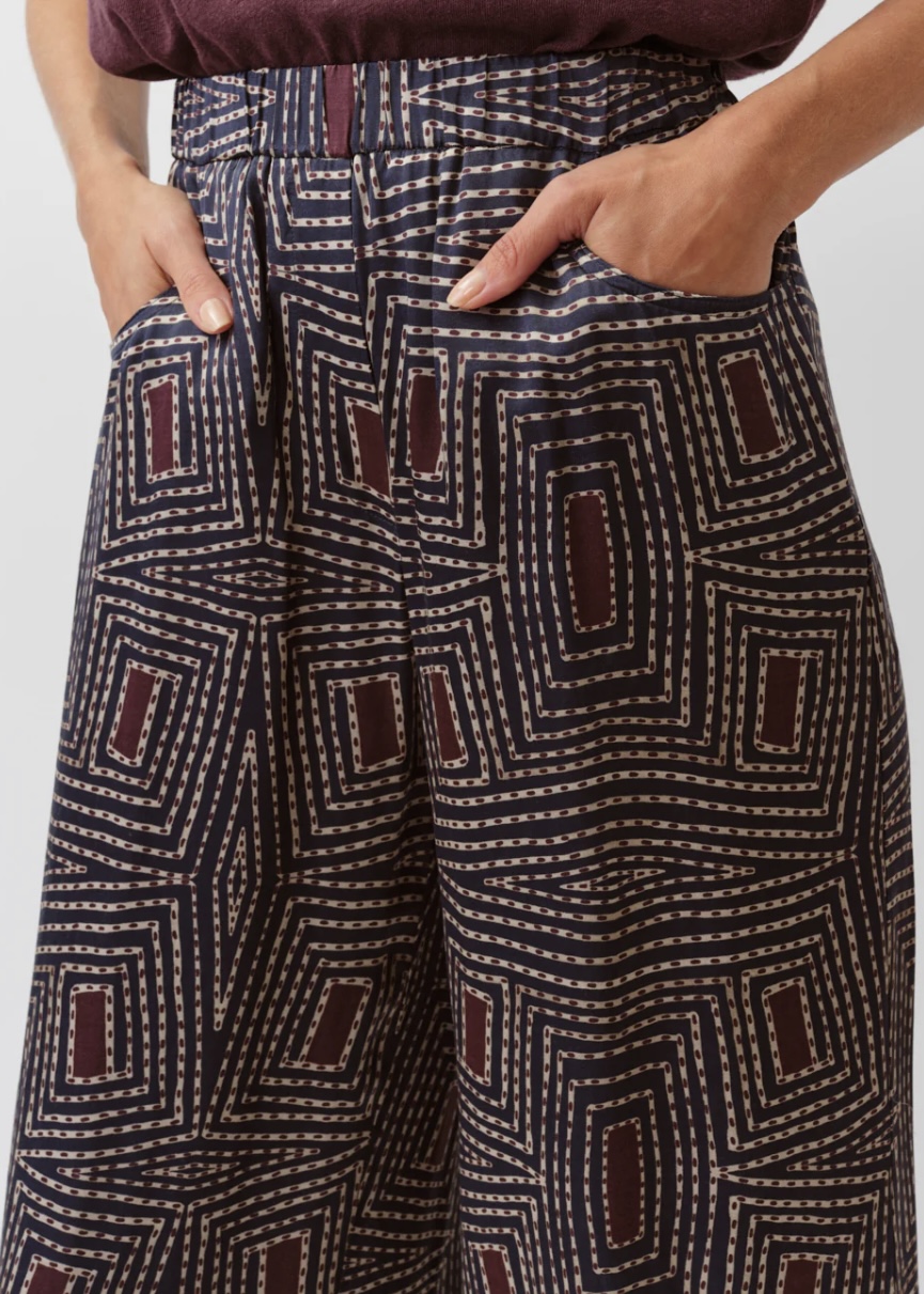 Crafted from silk-blend, these trousers are undeniably elegant that brings sophistication to any occasion. Features an elasticated waist and two front pockets. Pair them with a crisp blouse for work or relaxed top for an understated chic.