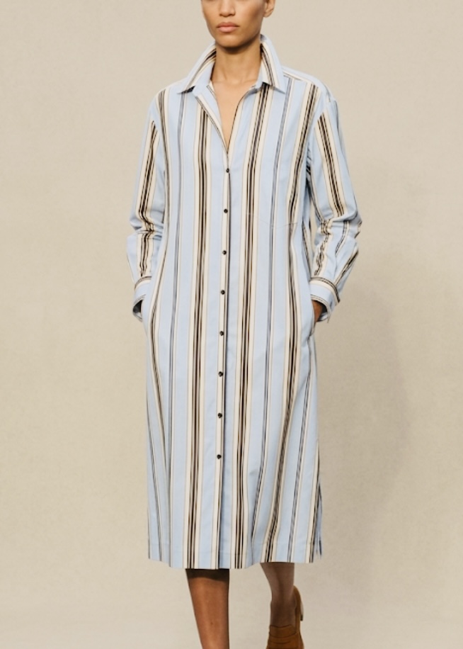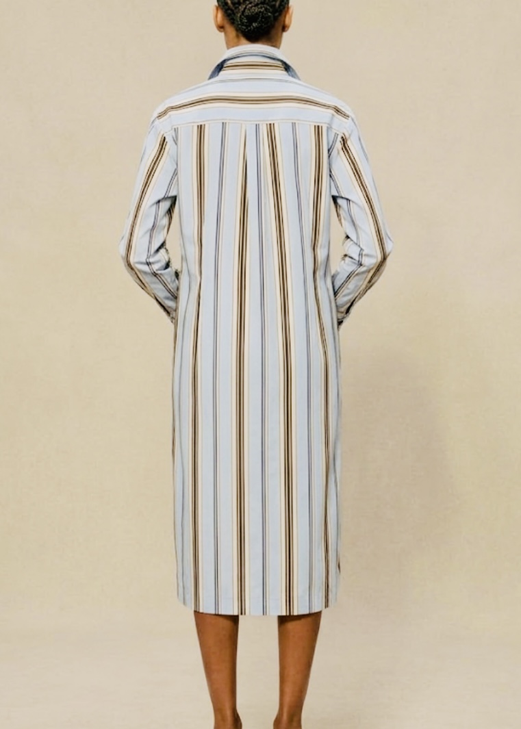 This midi dress crafted from cotton, features side slits that drapes beautifully, creating a fluid and relaxed silhouette that flatters your body. Can also be worn as an oversized blouse. The stand collar adds a touch of sophistication that makes it elegant to wear day to night.