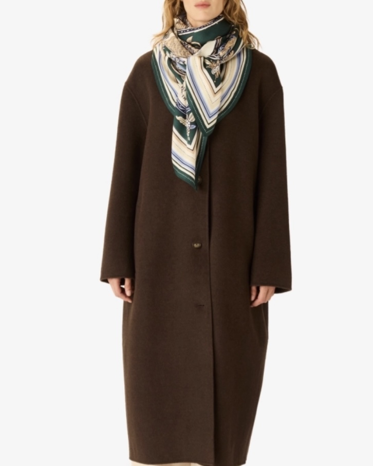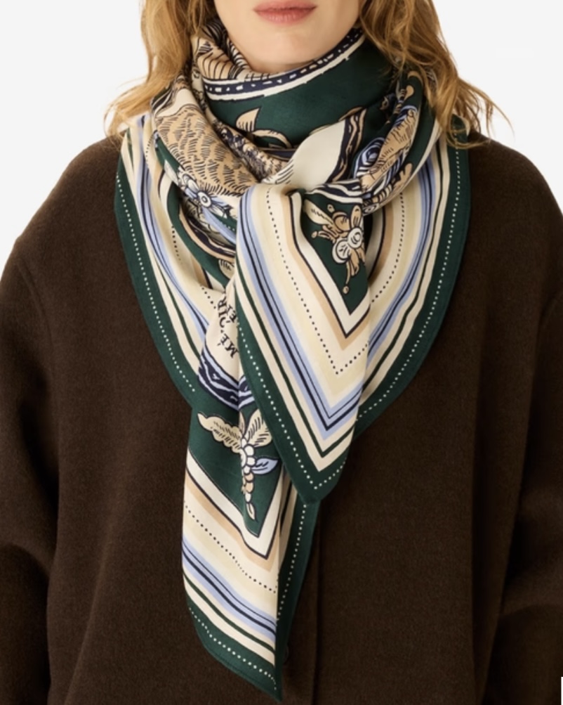 Experience the perfect balance of elegance and comfort with this silk–modal scarf. The natural sheen of silk pairs beautifully with the soft, airy drape of modal, creating a fabric that feels luxuriously smooth against the skin while remaining breathable and lightweight. Each scarf is adorned with a vibrant, hand-pulled screen print, giving it crisp lines, rich colors, and a truly artistic touch. The blend of fibers ensures both durability and gentle warmth, making it an all-season accessory you’ll reach for time and again. 52% silk 48% modal.