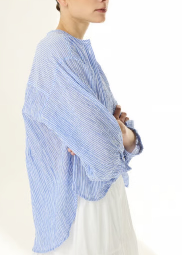 Upgrade your everyday wardrobe with this effortlessly stand collar blouse, crafted from cotton. Designed with a timeless striped pattern, it brings a fresh, modern touch to a flowy silhouette. Elegant yet versatile, this striped blouse is a must have that transitions seamlessly from season to season.