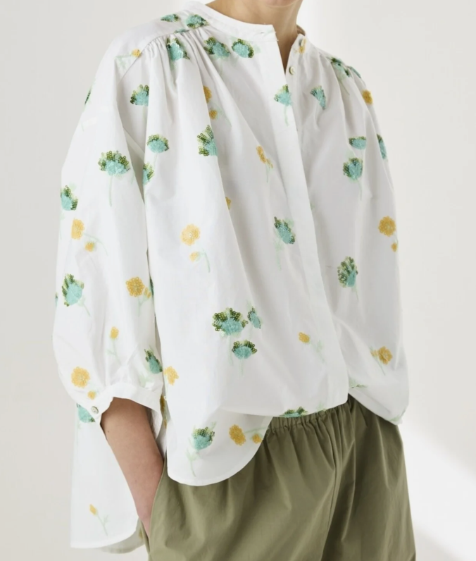 Add a touch of subtle glamour to your everyday wardrobe with this beautifully crafted cotton blouse. Delicate sparkle embroidery graces the fabric, catching the light with every movement and adding an elegant shimmer without overpowering the design. Pair with tailored trousers for a polished look or with your favourite jeans.