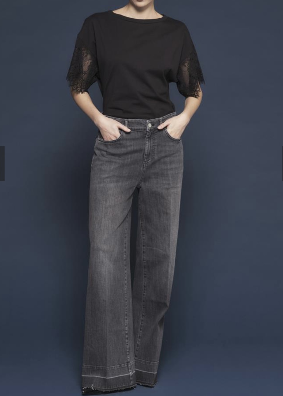 These wide-leg jeans feature a flattering high-rise waist and a loose, straight fit through the leg, giving them a laid-back yet polished silhouette. The neutral grey wash makes them easy to pair with anything – crisp white shirts for a clean look, cozy knits for casual days, or a sleek blazer for an elevated edge. Made in Italy.