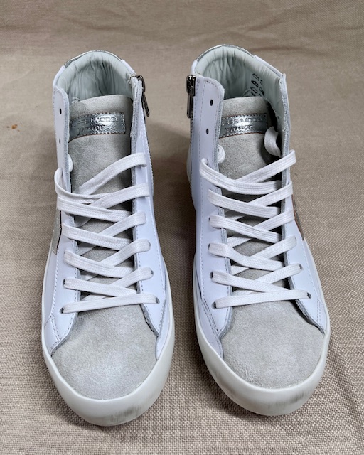 A high-top sneaker reworking a vintage finish. These sneakers crafted from leather. Made in France.