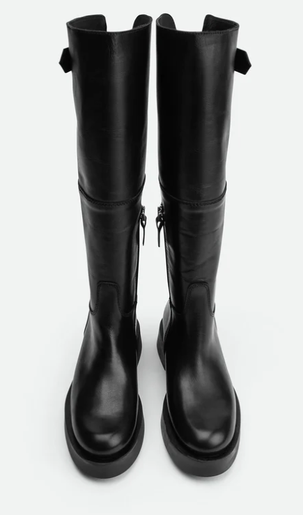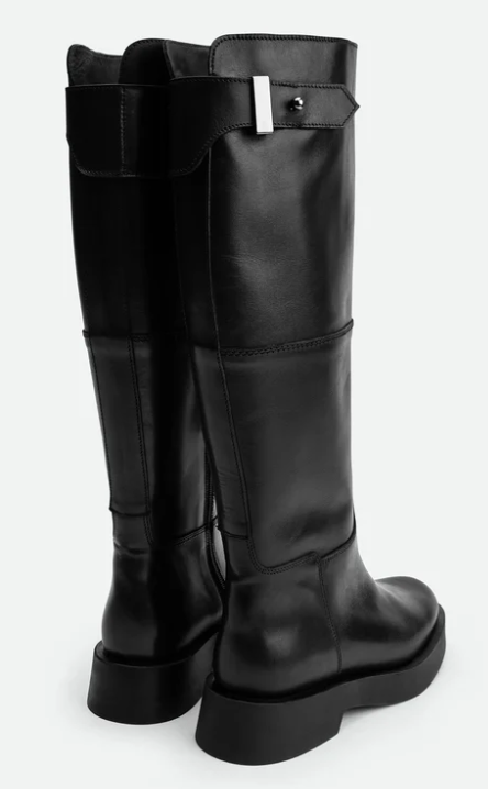 Handcrafted in Italy from smooth black calf leather, Xia is a tall riding boot with a modern edge. The clean shaft is accented by a sleek strap detail, set on a bold rubber sole that adds height and comfort. A full leather lining completes this contemporary take on a classic silhouette.