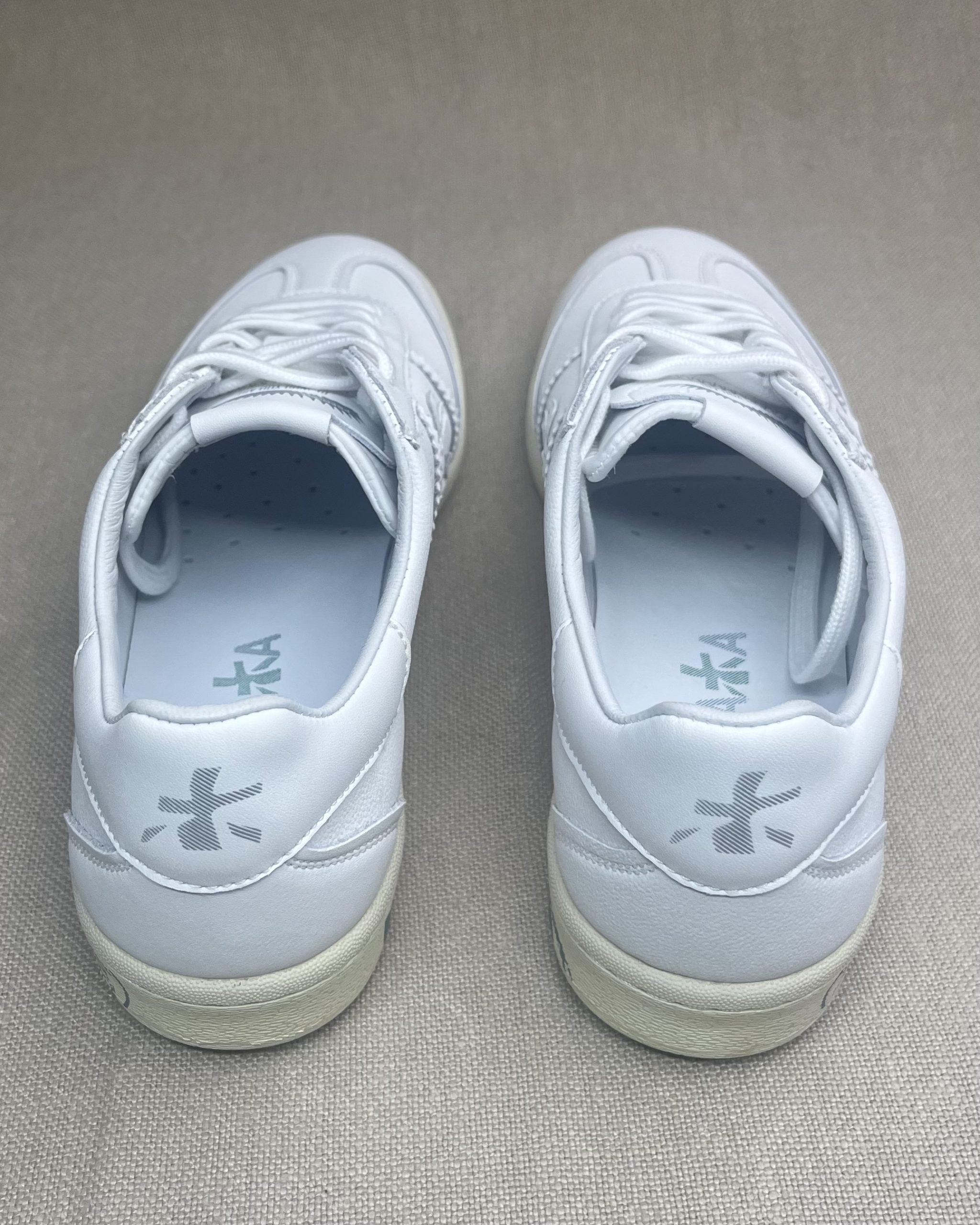 This sneaker in white leather with flash on the sides and tab at the back. Has a great eye for detail. A casual look exuding a streetwear elegant look. Made in Italy.