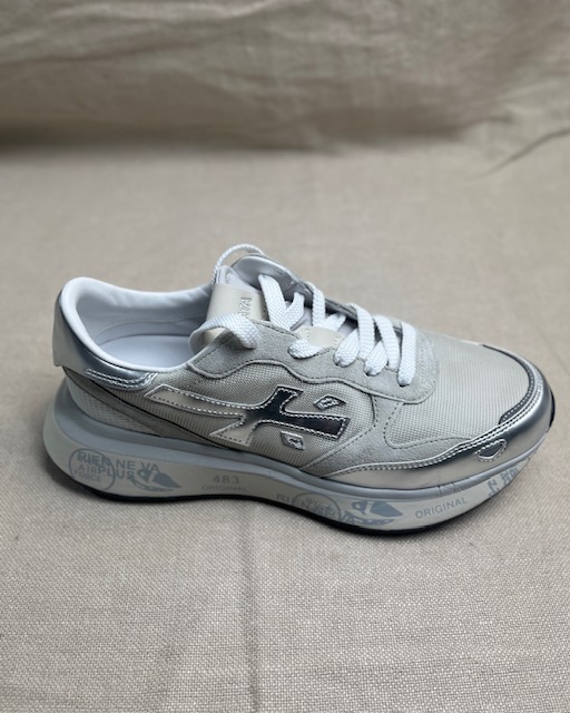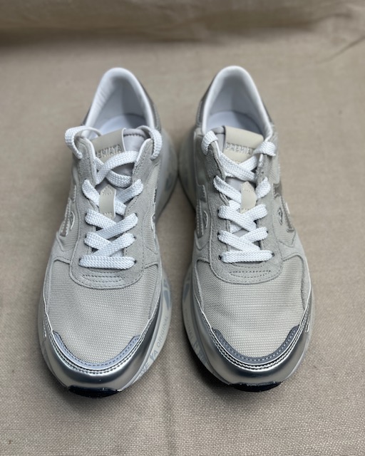 These sneakers crafted from premium suede and nylon fabric. The design is elevated with sleek silver accents on the sides and heel tab adding just the right touch of shine. A slighter higher sole for extra comfort. Made in Italy.