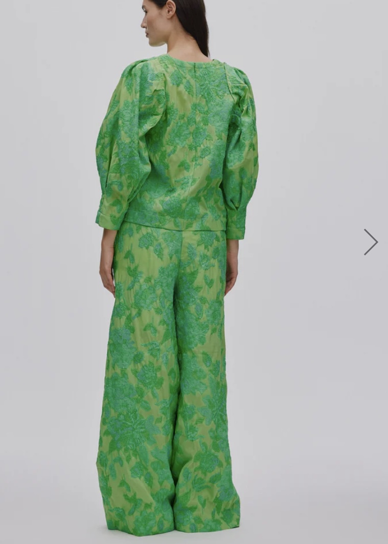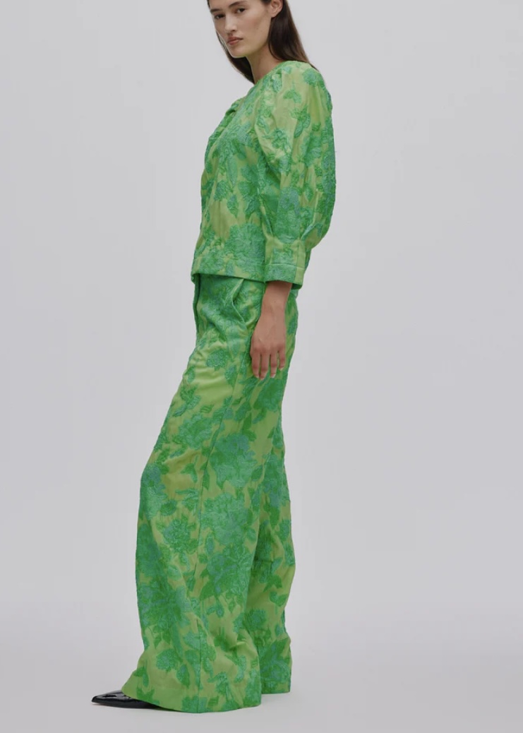 Add a dash of extravagance to your trousers edit with the jacquard trousers. The long, wide trousers are crafted from a delicate jacquard fabric, adding elegance to your day-to-night wardrobe. The trousers feature a fitted waist with a zipper closure.