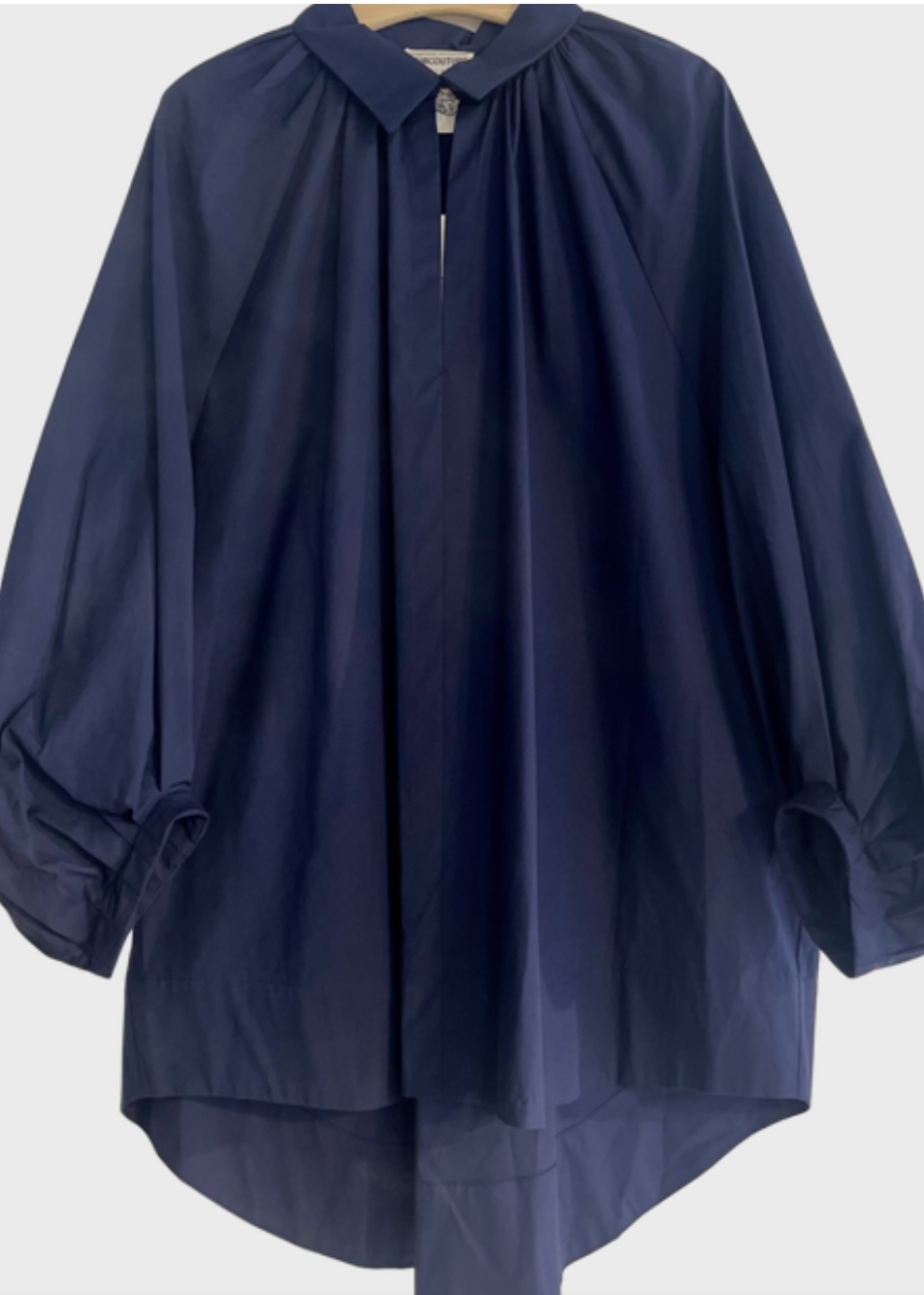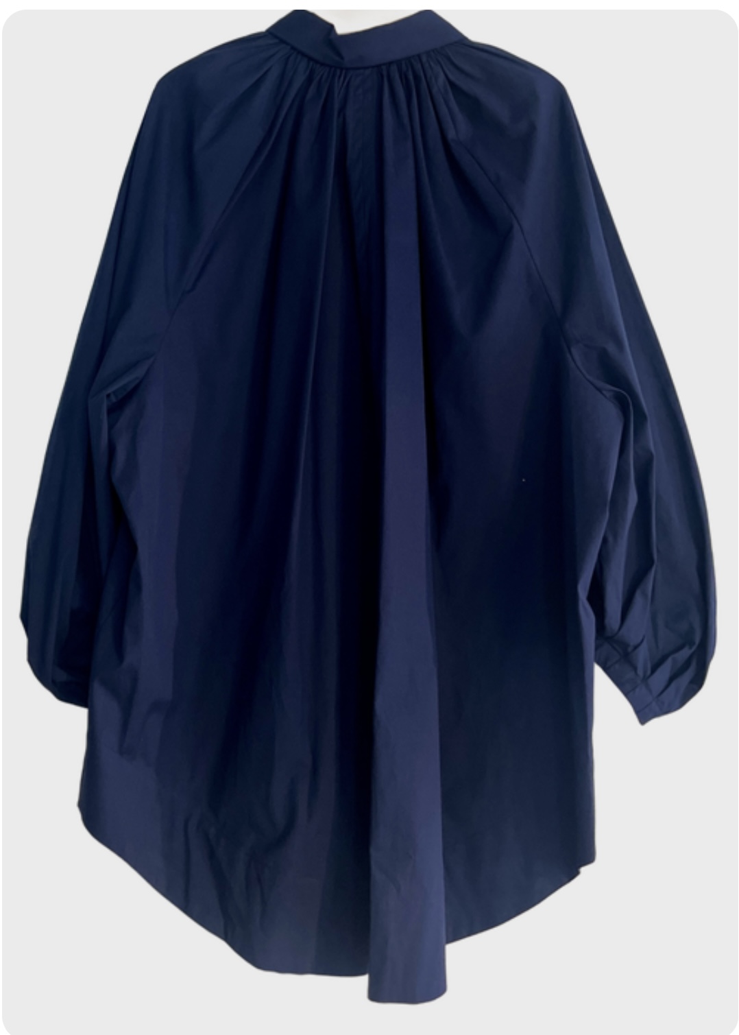 Semicouture cotton-poplin blouse. Button-fastening at collar, dropped shoulders, curved hem. Made in Italy.