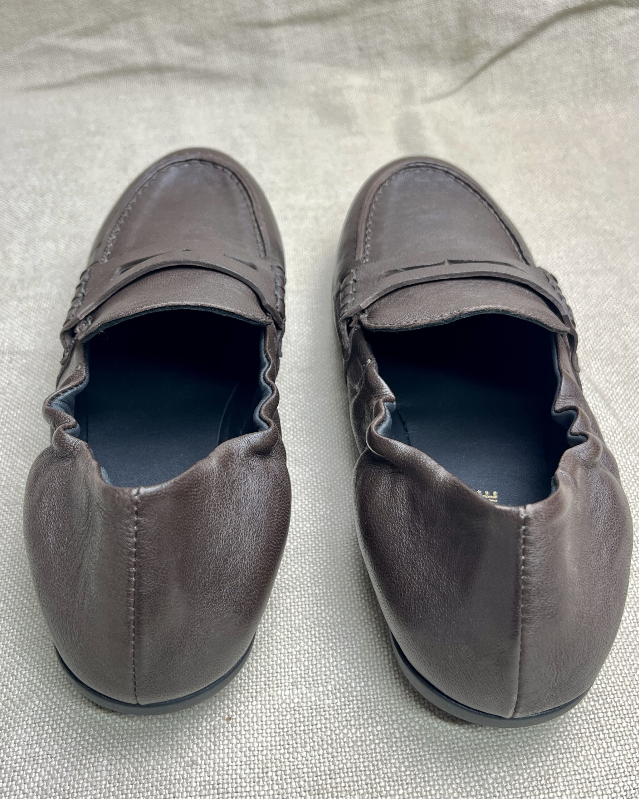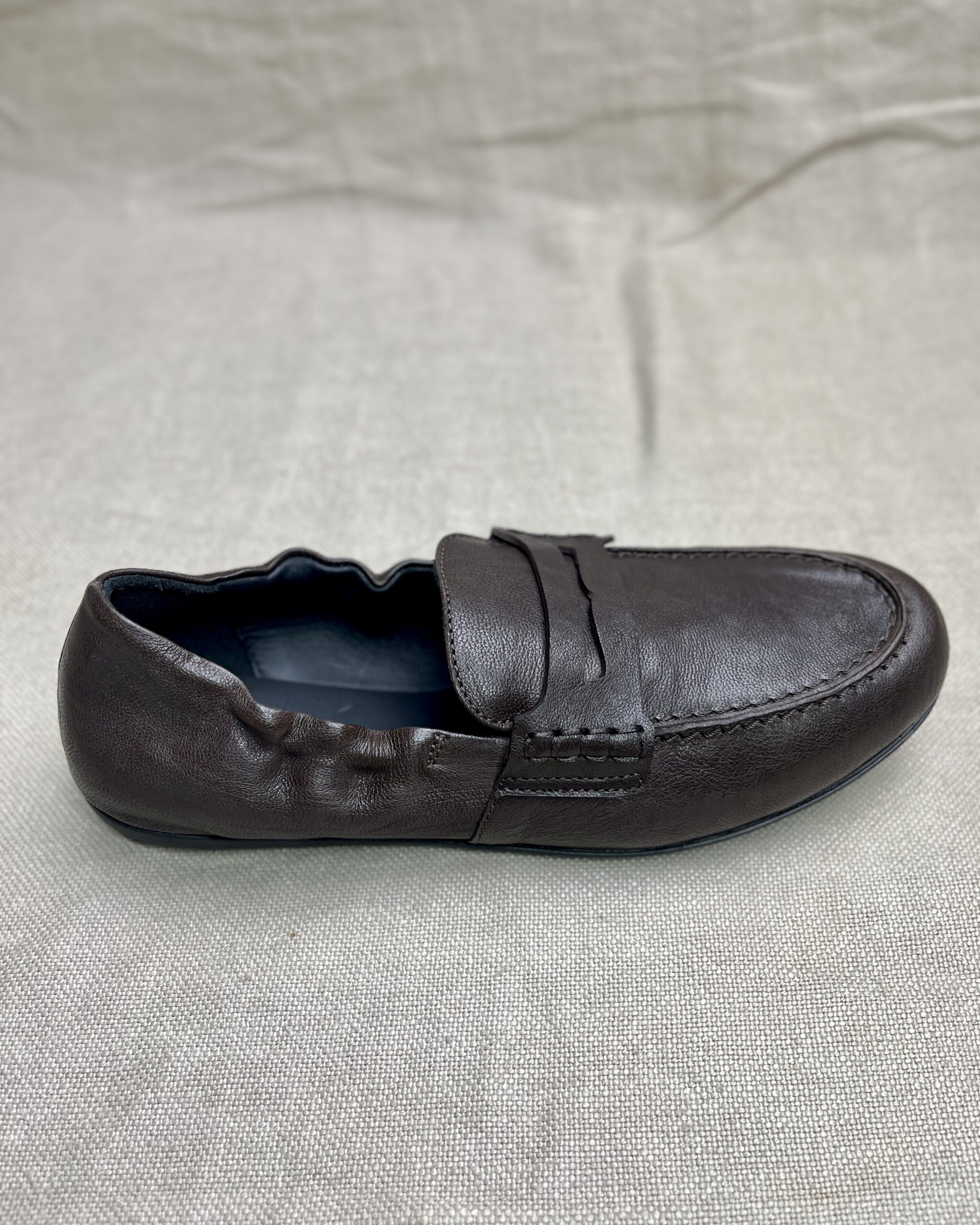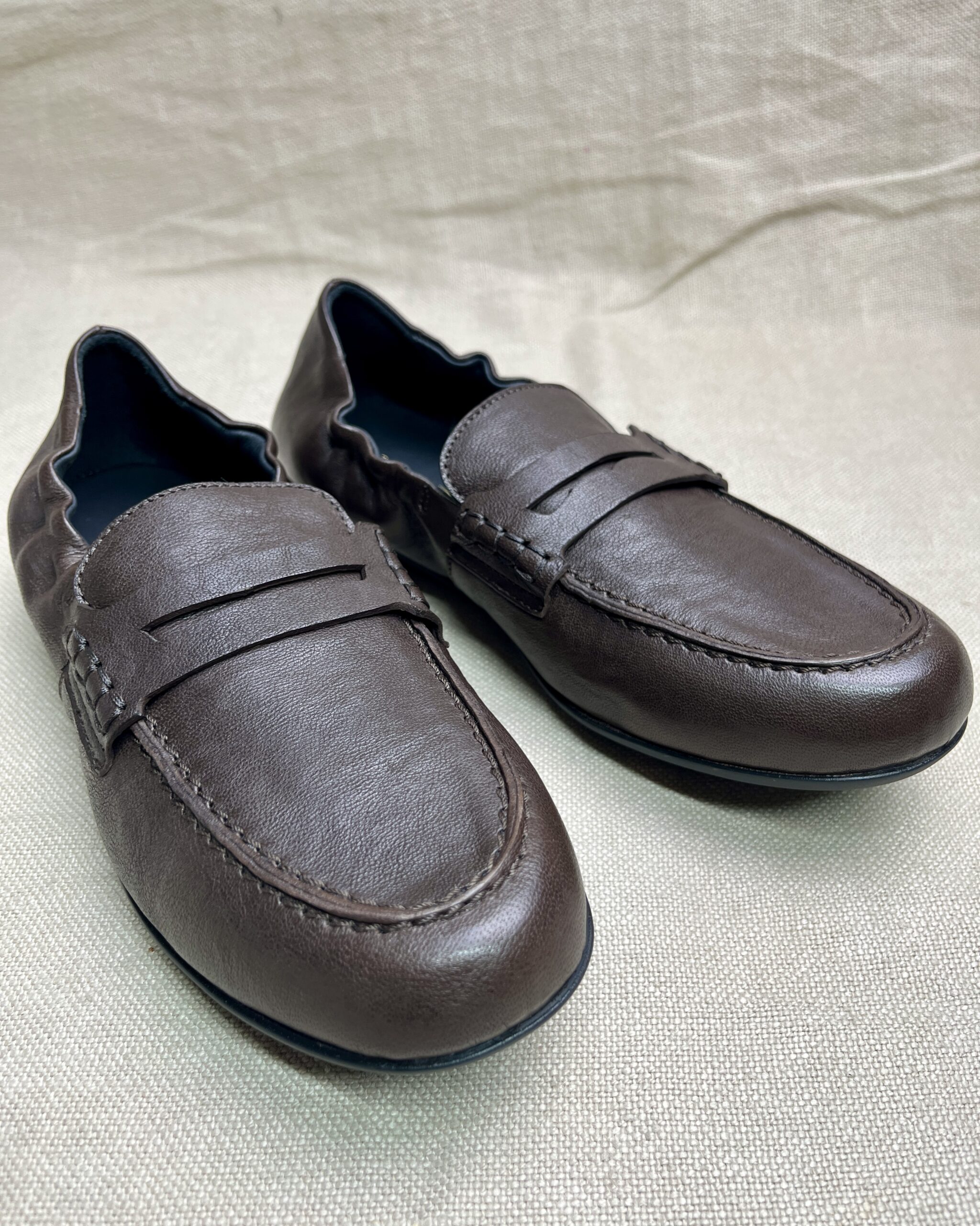 These moccasin loafers blend timeless style with modern sophistication. Crafted from soft leather. The shoe has an almond-shaped toe,with an elasticated back for ultra support and comfort. Made in Italy.