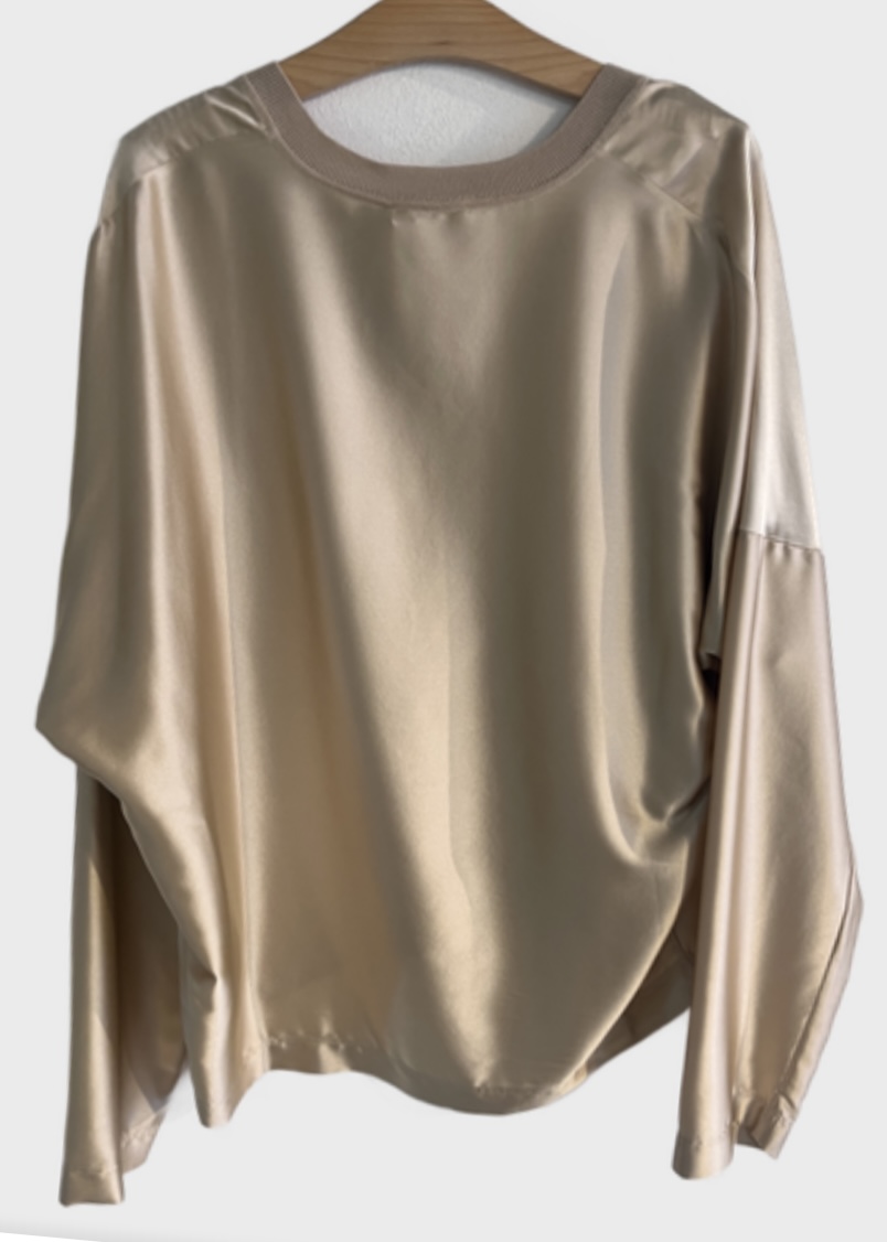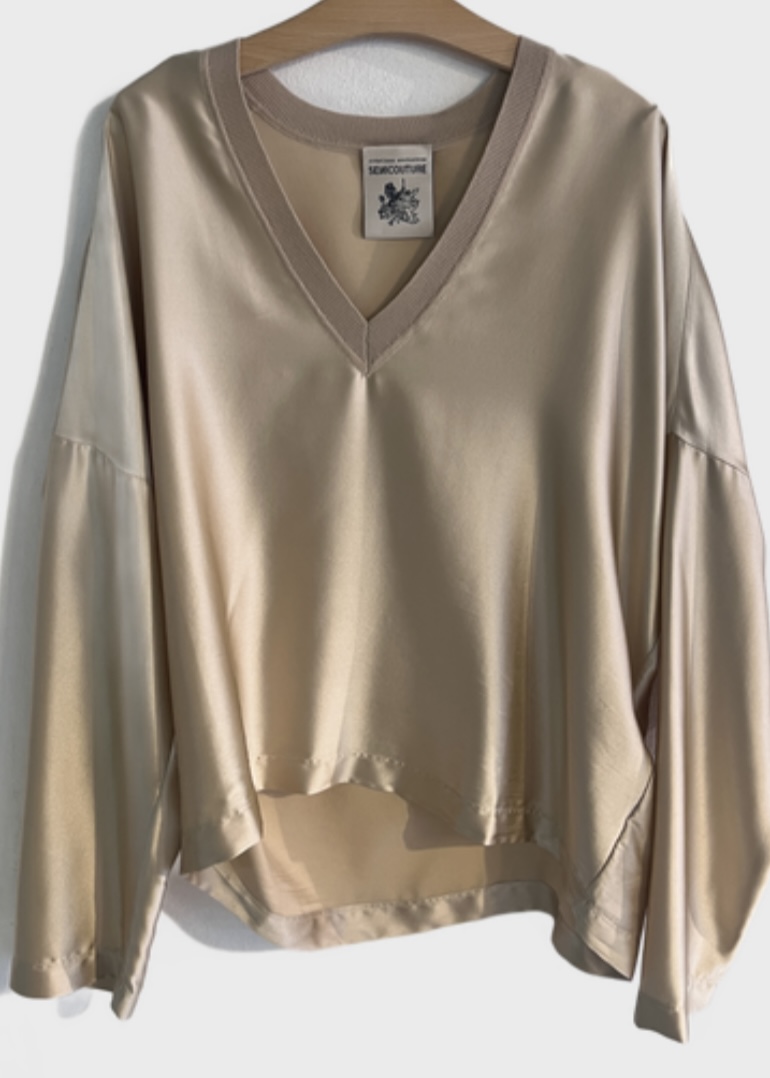 This long sleeve satin V-neck top offers a smooth, silky finish with a refined look. Designed for comfort and elegance, it drapes beautifully and adds a touch of luxury to everyday wear.