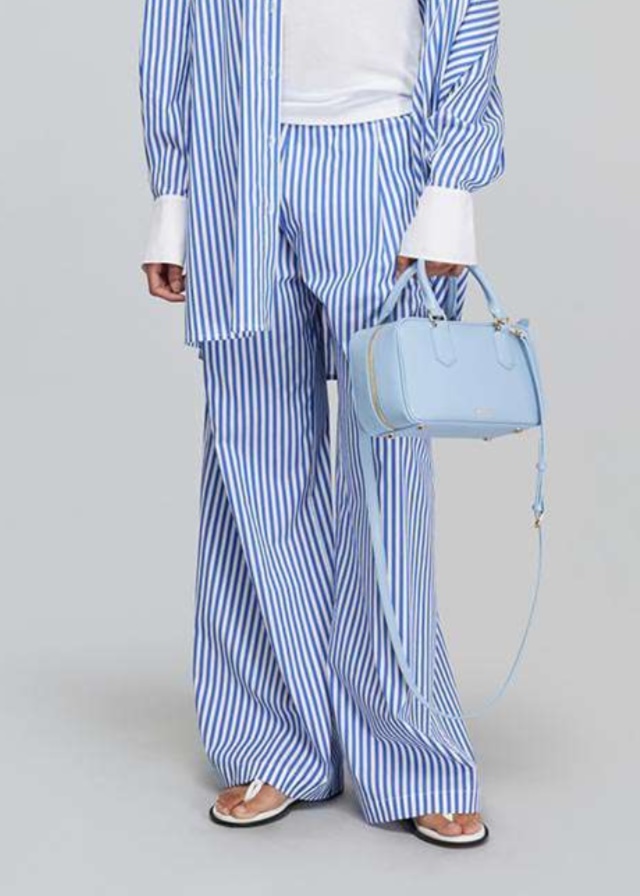 Striped blue and white cotton trousers are a perfect blend of casual sophistication and comfort. The breathable cotton fabric ensures lightweight, airy feel, making them ideal for warm-weather outings. The blue and white stropes evoke a classical preppy or nautical feel, offering a timeless yet versatile pattern. They pair seemlessly with simple tops, linen shirts or cropped blouses for an effortessly chic look. Made in Italy.