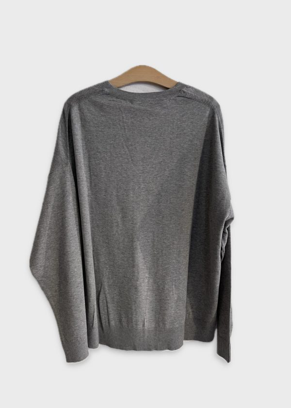 This super fine knit sweater is made from 100% cotton. Features a deep V-neckline, long saddle sleeves with ribbed cuff and a ribbed hem. Made in Italy.