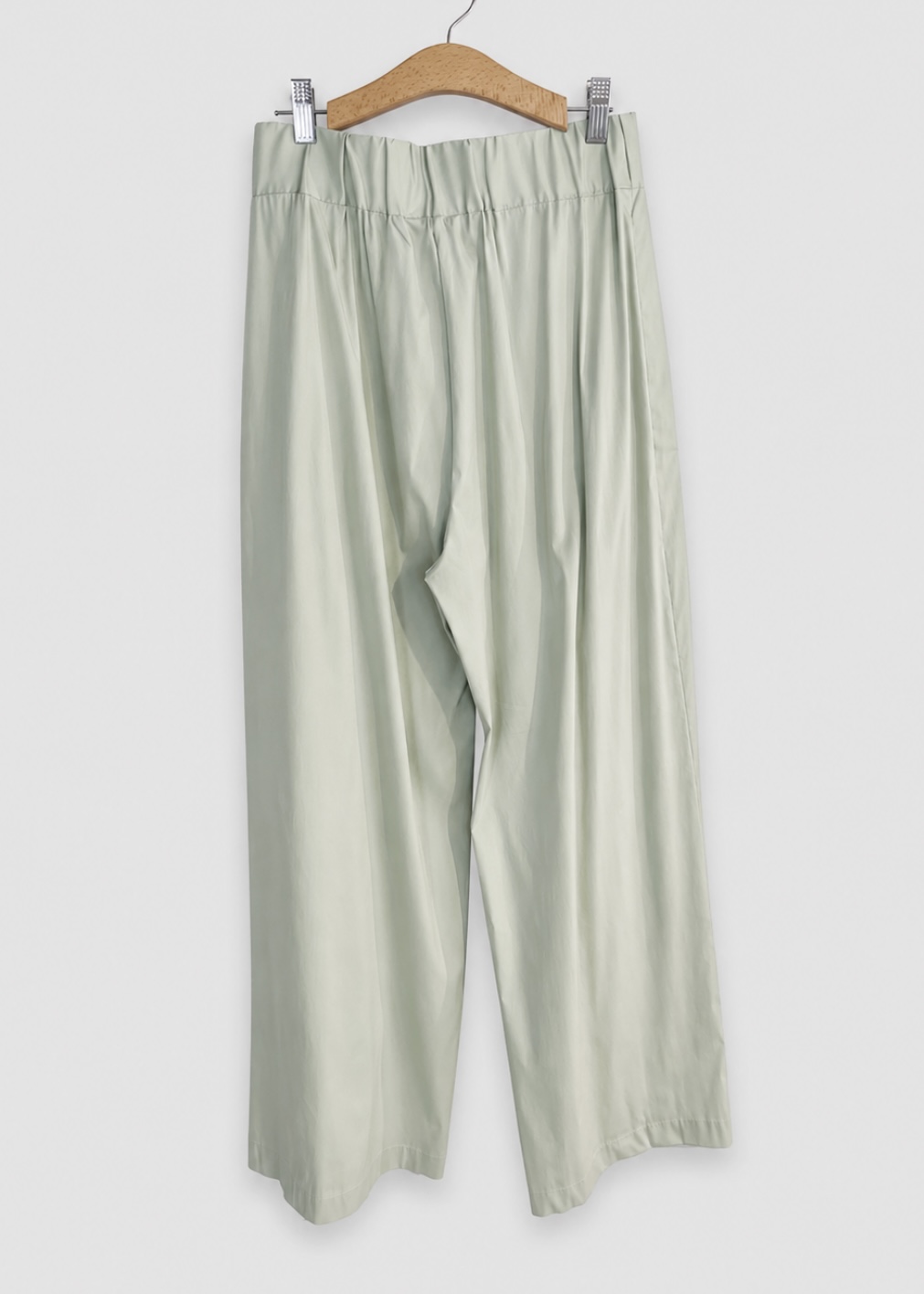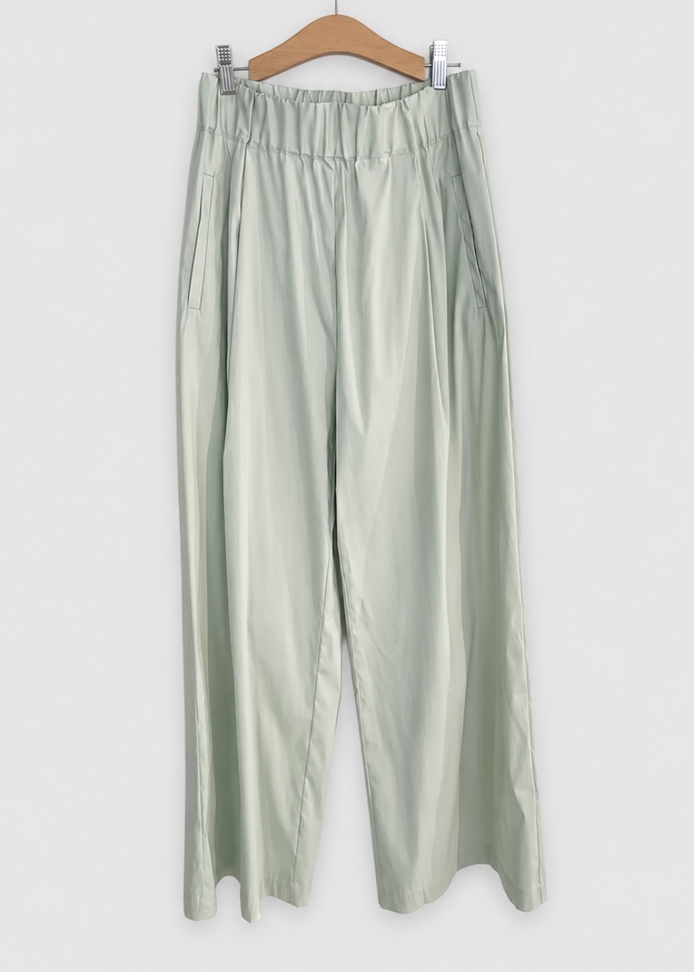Wide-leg trousers, with a high-waisted elasticated waistband for a comfortable and flattering fit. Features concealed side pockets. Made in Italy.