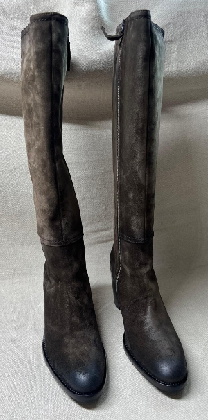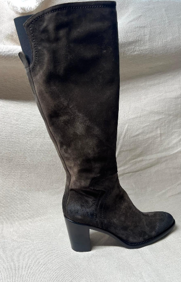 These suede knee-high boots crafted from soft luxurious suede , they rise gracefully to the knee, offering a sleek and timeless silhouette. Features a side zip makes slipping them on effortless, while ensuring a snug and tailored fit. Featuring a sturdy block heel, these boots deliver just the right amount of lift without compromising comfort, making them perfect for all-day wear. Whether paired with a cosy sweater dress or your favourite denim, these boots add a touch of sophistication to any outfit, effortlessly transitioning from day to night.